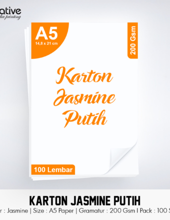 Rp 19.500 Rp 25.000Karton JASMINE Putih (A5 / 200 gsm / 1 pack = 100 lbr)