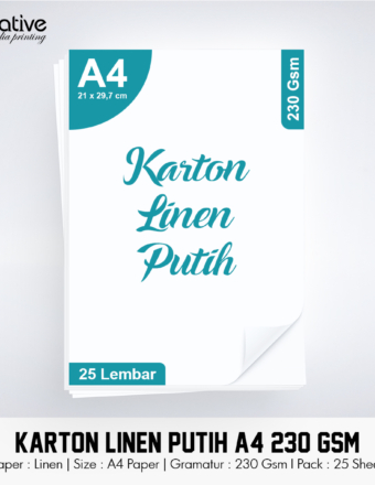 Rp 26.000 Rp 30.500Karton Linen Putih (A4 / 230 Gsm / 1 pack = 25 lbr)