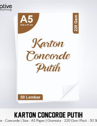 Rp 16.000 Rp 21.000Karton Concorde Putih (A5 – 220 Gsm – 1 Pack = 50 lbr)