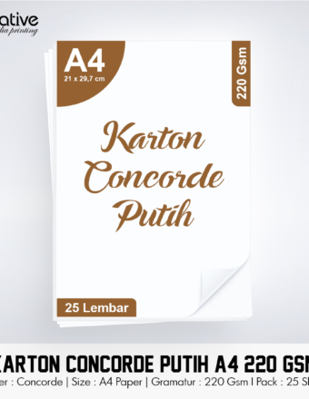 Rp 19.500 Rp 25.000Karton Concorde Putih (A4 – 220 Gsm – 1 Pack = 25 lbr)