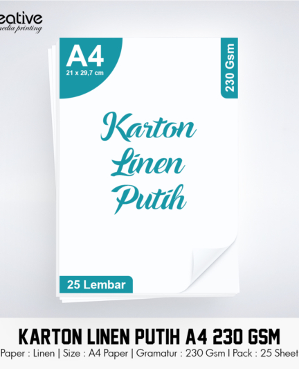Karton Linen Putih (A4 / 230 Gsm / 1 pack = 25 lbr)